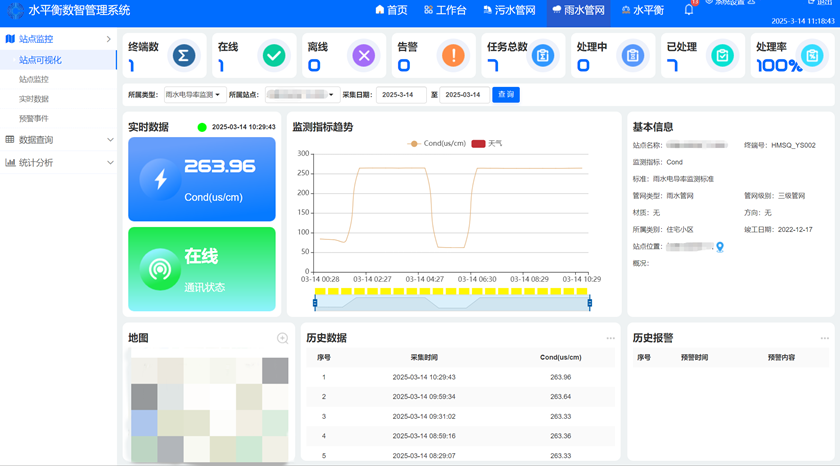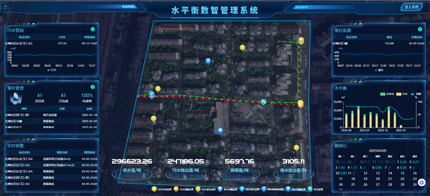 “水平衡數(shù)智管理系統(tǒng)”綜合運用物聯(lián)網(wǎng)、大數(shù)據(jù)分析、在線監(jiān)測等技術,全方位監(jiān)測降水量、積水量數(shù)據(jù),針對性解決治理痛點,極大提升管理效率。