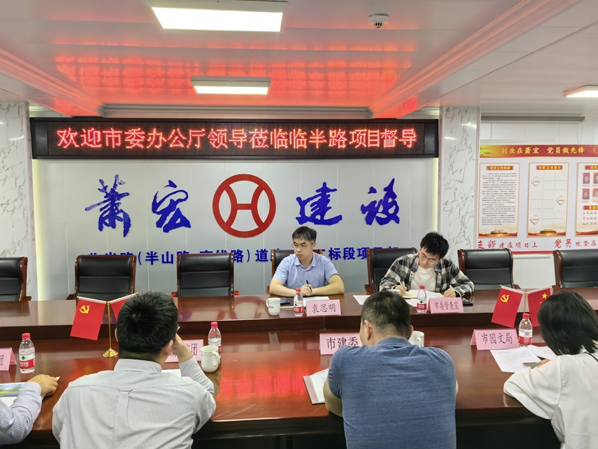 袁思明副主任一行踏勘了項(xiàng)目現(xiàn)場,對(duì)項(xiàng)目施工進(jìn)度、現(xiàn)場管理、安全文明施工措施等方面進(jìn)行實(shí)地調(diào)研。在隨后召開的座談會(huì)上,市城投集團(tuán)傅翼部長圍繞臨半路項(xiàng)目整體建設(shè)情況及后續(xù)施工方案進(jìn)行匯報(bào),與會(huì)各部門針對(duì)亞運(yùn)保通、景觀綠化方案、建設(shè)時(shí)序等具體事項(xiàng)進(jìn)行了探討。