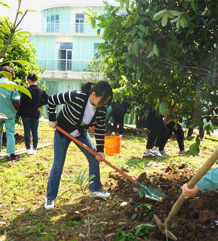 接著,市政公用公司與市一福利院共同為黨建共建基地揭牌。揭牌儀式結(jié)束后,雙方黨員干部、休養(yǎng)代表們共同植樹,大家分工明確、干勁十足、熱情高漲,揮鍬鏟土、定點挖坑、覆土壓實,每一道工序都一絲不茍,經(jīng)過大家的共同努力,一株株充滿希望的桂花樹煥發(fā)出勃勃生機。