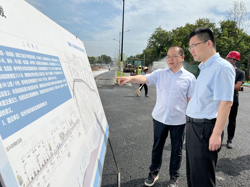 在環(huán)北天目提升改造工程現(xiàn)場,陸梨華書記聽取了關于管理用房建設情況、路面瀝青攤鋪進度、消防設備調試、存在問題和后續(xù)、計劃安排的詳細匯報,詢問了亞運專用道建設情況和沿線綠化恢復情況。